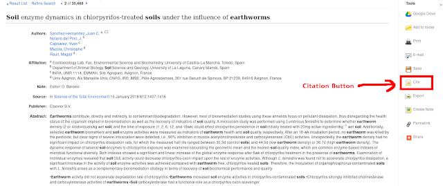 - Select article and click “Cite” button see formats and copy citation or save information into Proquest Refworks.